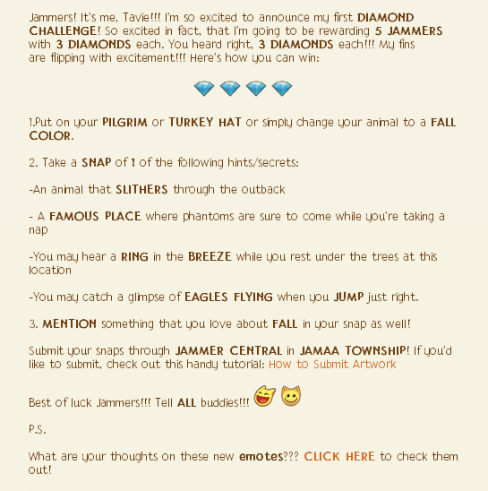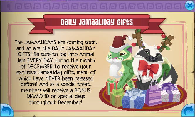 The Jamaalidays are coming to Jamaa very soon! So don't forget to visit Animal Jam everyday during December to receive a cool Jamaaliday gift! Moving on here is the final page: