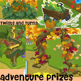 Now I am sure you have all heard about the newest adventure in Jamaa "Twists & Turns" where you have to run around in a huge corn maze and collect different colored keys and open chests. Well do you know what prizes you collect when you get to the middle? Well I have gotten a few of them so I made a kinda prize guide..
