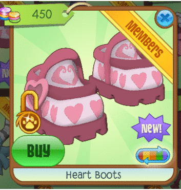 Hey Jammers! SnowyPaw here today with the new item which is located in the Shiveer Shoppe,so be sure to purchase your very own Heart Boots for 450 Gems!